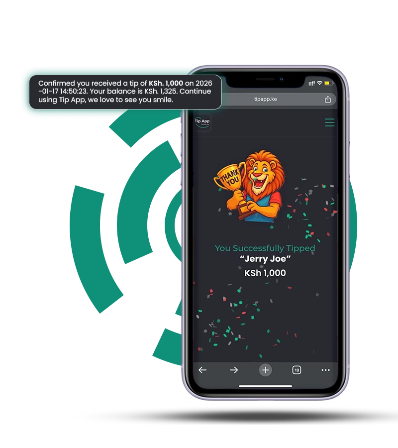 Feel the gratitudeWatch your wallet grow as tips arrive directly to your account. Withdraw to M-Pesa anytime with minimal fees and real appreciation.